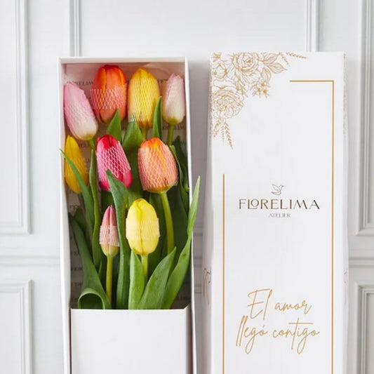 Mini Box Alegría - 10 Tulipanes Multicolor