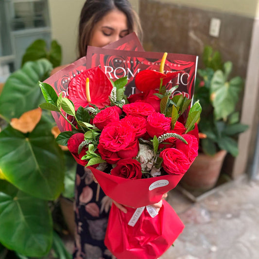 • Ramo Valentina: peonias rosadas( Rosas inglesas), mini rosas y rosas rojas