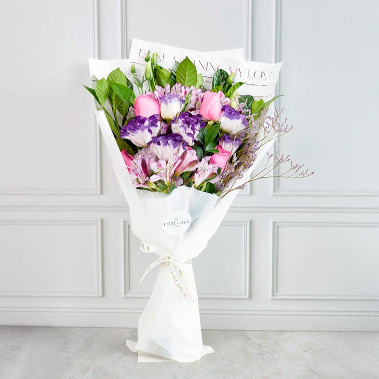 Ramo Valentia: Rosas, Claveles, Lisianthus y Astromelias - Flores Moradas