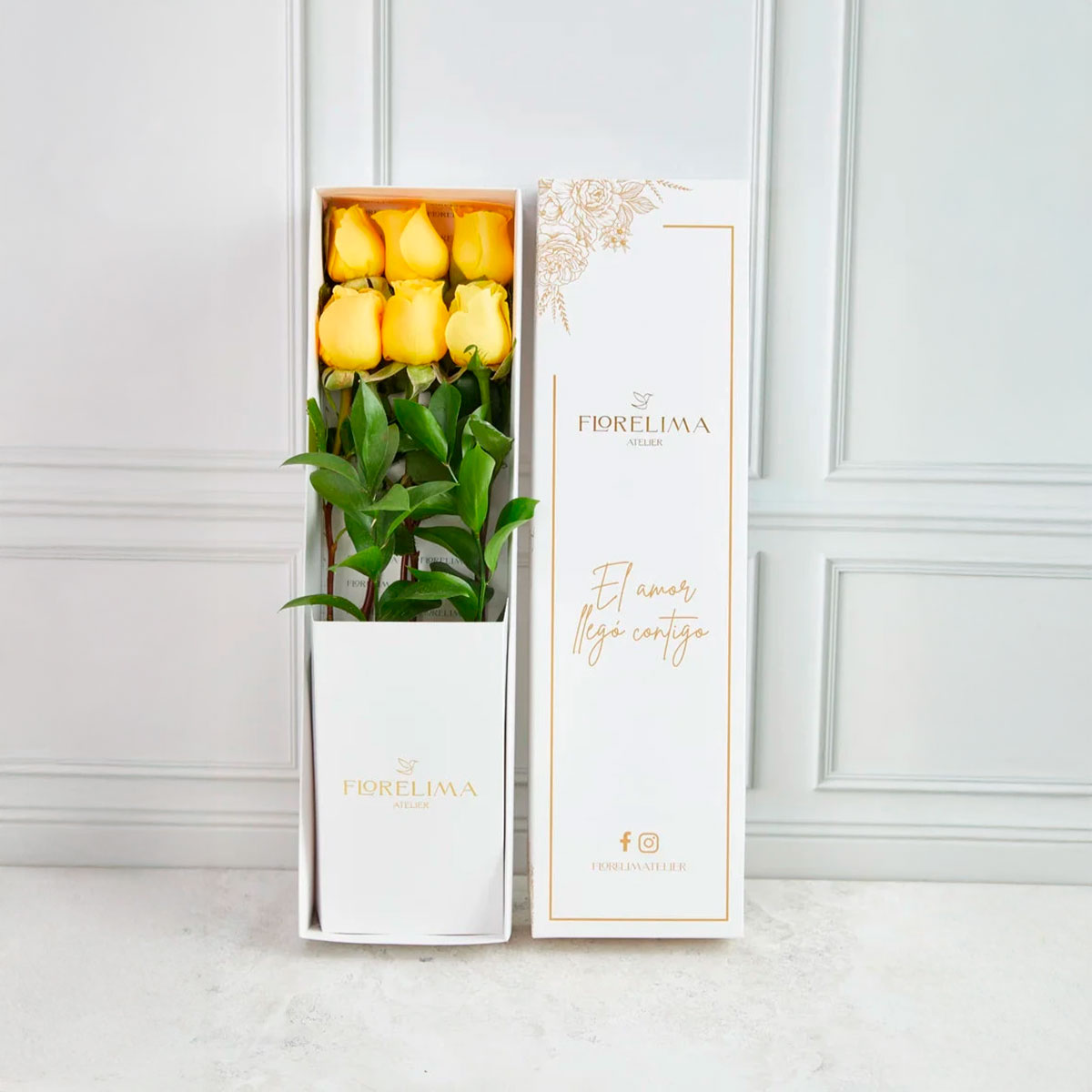 Caja 6 Rosas Amarillas - Flores Amarillas