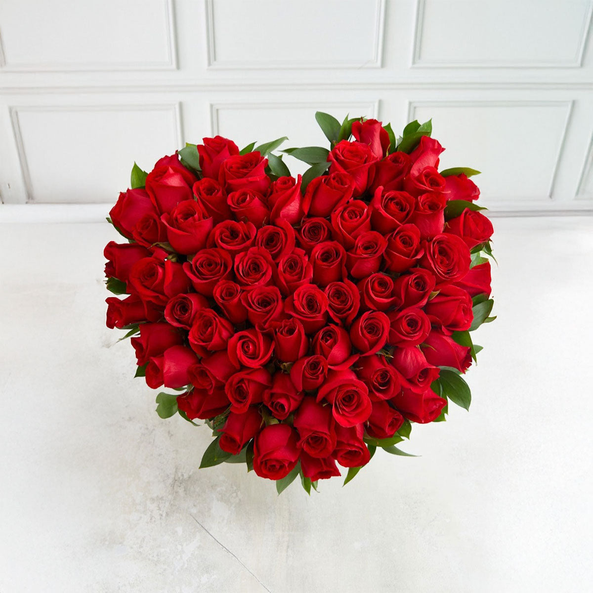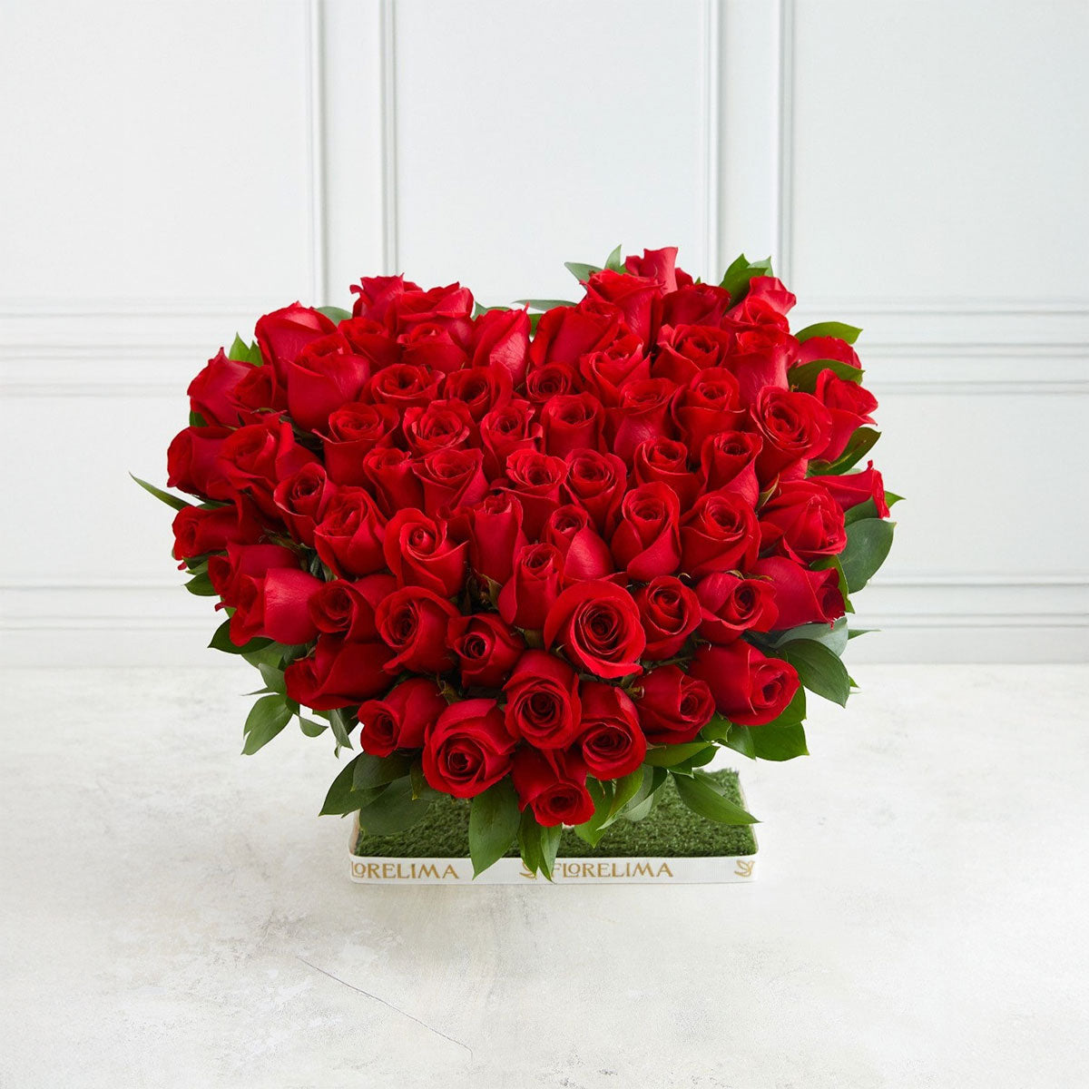El regalo perfecto para conquistarla el "Mini Rosalie", un adorable y elegante arreglo floral en forma de corazón que mide 30 cm x 35 cm. Este diseño exclusivo presenta 80 rosas premium en tonos vibrantes de rojo intenso, cuidadosamente dispuestas para capturar la esencia del amor apasionado. Cada detalle, desde hojas bordeando las rosas hasta la elegante base de manera, refleja dedicación y sofisticación. Perfecto para celebrar momentos especiales con un toque de elegancia y romance.