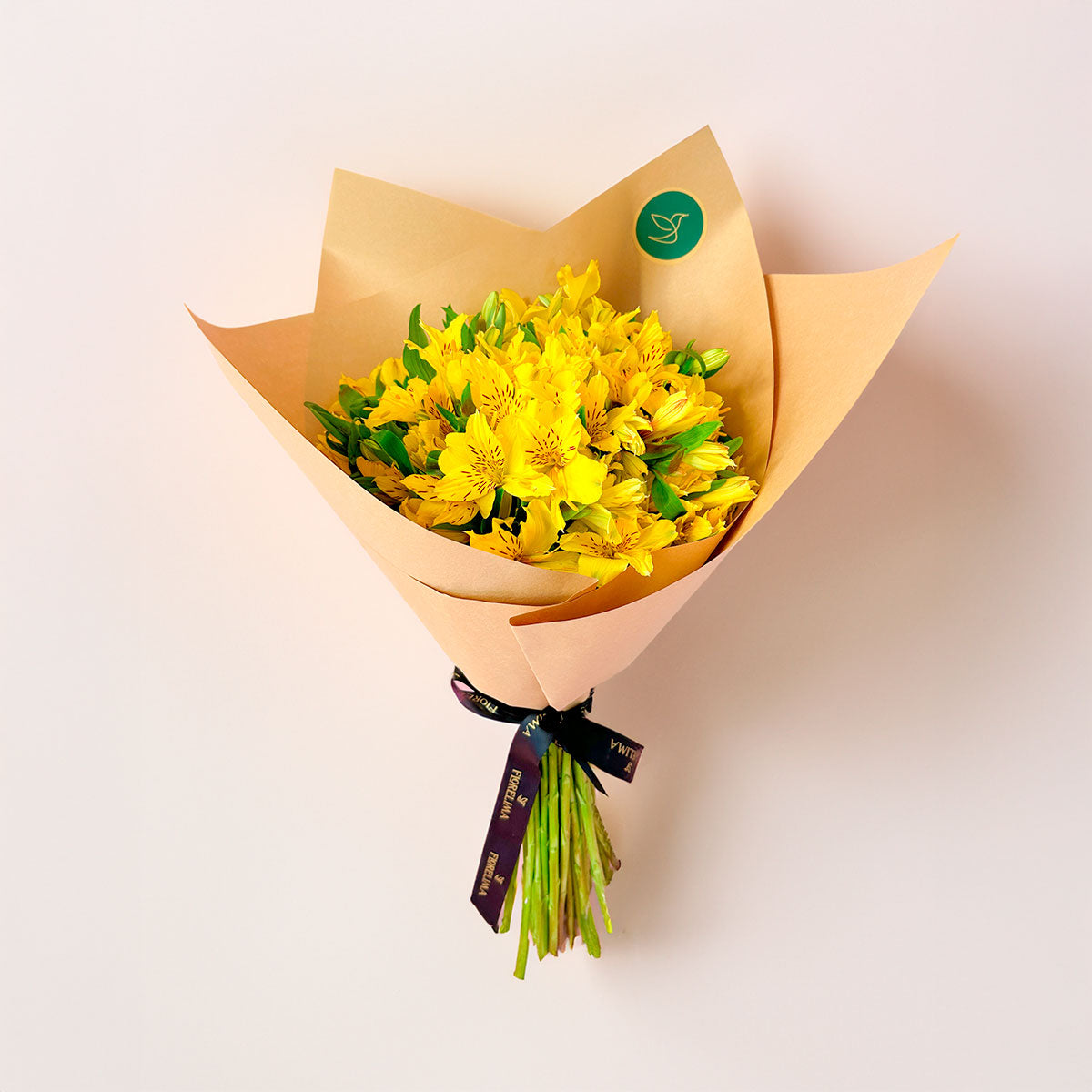 Ramo grande de astromelias amarillas, el papel varía según disponibilidad.