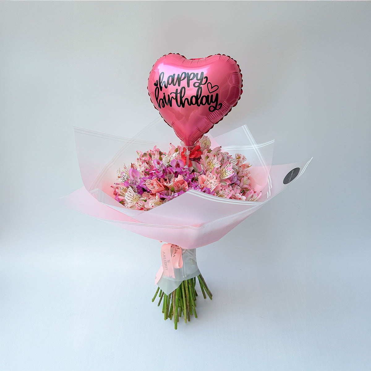 ¡Celebra el día especial con nuestro extraordinario Ramo Buchón de Astromelias Cumpleaños con un globo de Happy Birthday en Florelima!