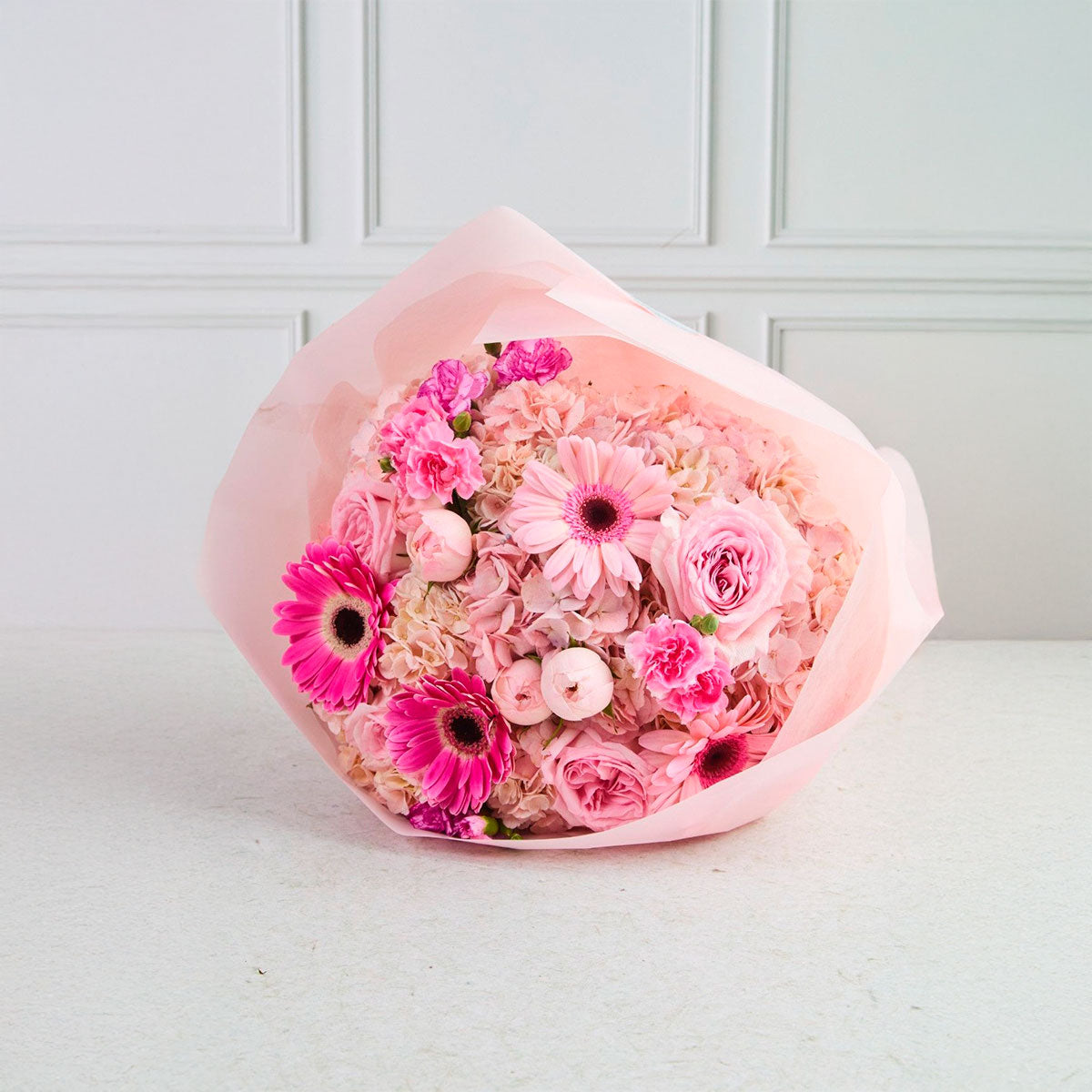 Ramo Rosa - Gerberas, Rosas Inglesas y Hortensias